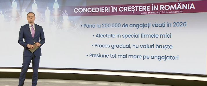 Criza economică se vede în piața muncii: Până la 200.000 de angajați ar putea fi concediați anul acesta Criza economică începe să se vadă direct în piața muncii: firmele mici și mijlocii din România reduc costurile și pregătesc concedieri. Estimările din piață arată că până la 200.000 de angajați ar putea fi afectați anul acesta, arată o analiză adevarul.ro, în special din microîntreprinderi, cele mai vulnerabile la scăderea consumului. Datele oficiale arată scăderi puternice: • Comerțul cu amănuntul: -9,1% în ianuarie și -7,6% în februarie •
