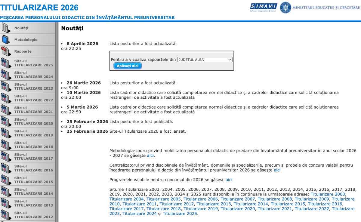 Sursa: Edupedu — https://www.edupedu.ro/site-ul-titularizare-2026-a-fost-actualizat-miercuri-seara-posturile-pe-care-profesorii-se-pot-angaja-in-scoli-lista-pe-judete/